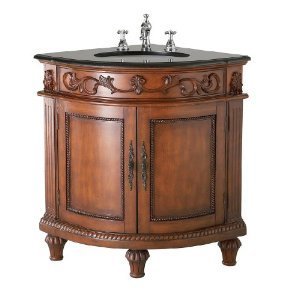Finish:Dark Oak Single Basin Corner Vanity Two doors open to storage compartment. Includes White Undermount Porcelain Basin. Includes Antique Brass Cabinet Hardware. Black Granite Pre-drilled on 8 Centers..../ Belle Foret BF80039R Single Basin Bathroom Corner Vanity, Dark Oak / Bathroom Corner